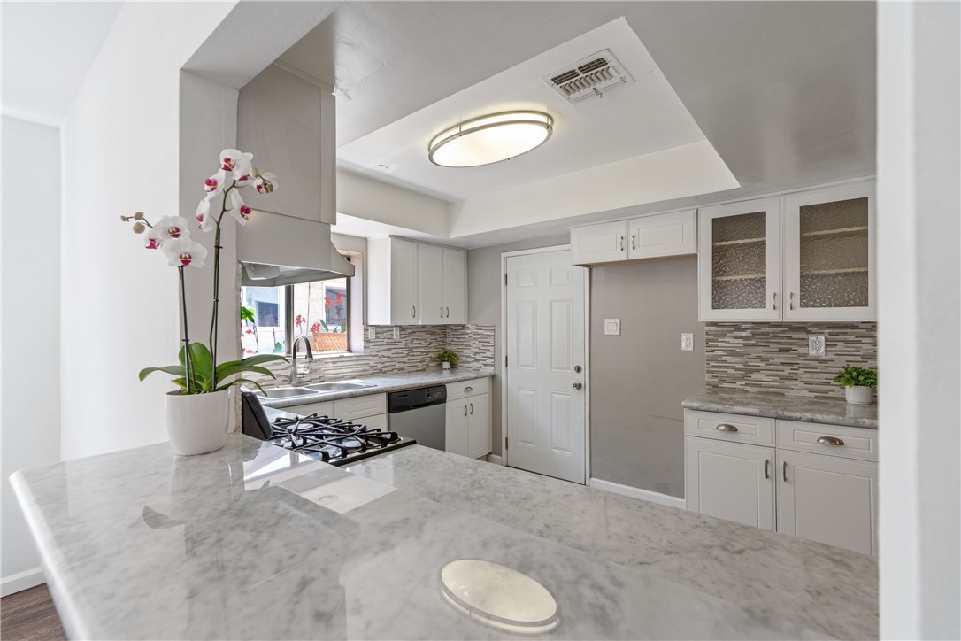 Craftsman home updated and highlighting original Craftsman charm with inviting landscaping. Entering the spacious and bright living room flowing into the dining area, you will appreciate the completely renovated home with its open and warm layout. The kitchen boasts walk-in pantry, Carrara marble counter tops, designer mosaic backsplash and stunning stone floors. The warm and relaxing family room has a woodburning fireplace with gas hookup, along with a stylish stone sitting hearth. The downstairs bathroom and upstairs primary bathroom have both been recently updated, including Carrara marble vanities. The spacious upstairs primary bedroom provides a quiet respite. Double large closets with ample space, along with a spacious primary bathroom and additional storage. The primary bedroom's placement allows for a soothing breeze to flow. The lovely backyard has a concord grape vine, Meyer lemon tree and open area, presenting the perfect place for family and friends to gather. Newer roof, central HVAC, copper plumbing, newer attic insulation, Ring doorbell, security, front yard drip system, ample driveway parking for up to 8 cars and new storage unit enhance this home that is not to be missed!