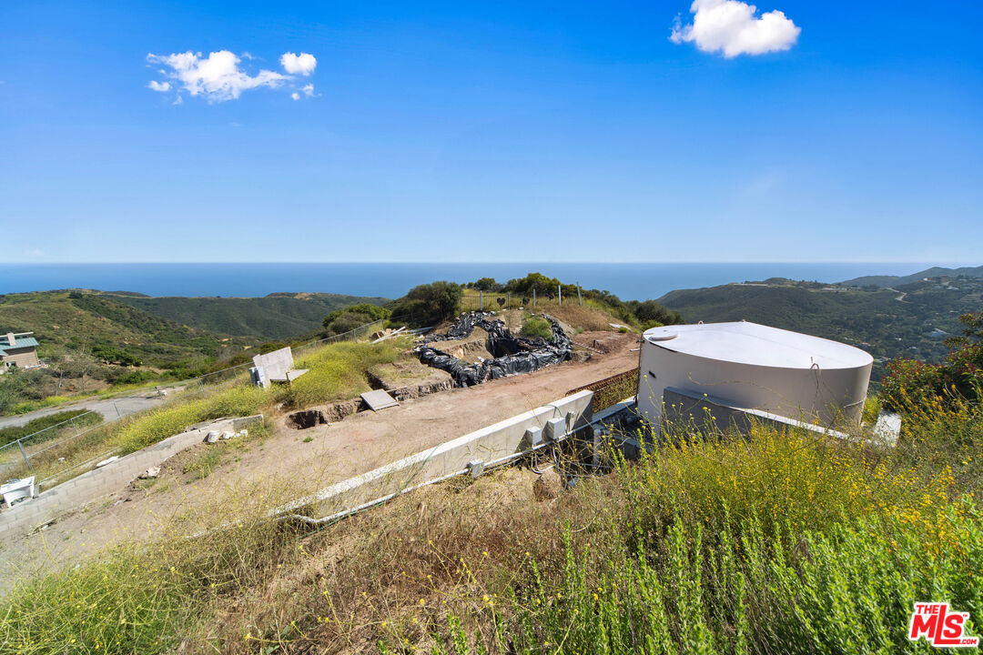 Approved, red-stamped building plans, for this ocean view approx. 1-acre lot ready to start building now, and saving hundreds of thousands of dollars and YEARS of work and uncertainty for the new owner! Active coastal development permit, fire department approval, grading permit, and grading completed and signed off vesting the CDP. The newly sealed access road, new water well intact, electricity, and FIOS fiber optic are in the street. The flat ocean-view building pad is graded and compacted. The retaining walls and drainage work for the graded driveway are completed. Build the Coastal approved plans for a 2784 SF modern home/garage or amend these plans within the same footprint with acclaimed architect, Vitus Matare. Incredible ocean, city lights, canyon, and mountain views! Price includes geology/soils reports, water well and 10,000 water tank, percolation reports, new septic system installed, survey/topo maps, fuel mod, 2 sets of architectural plans, retaining walls, and more.