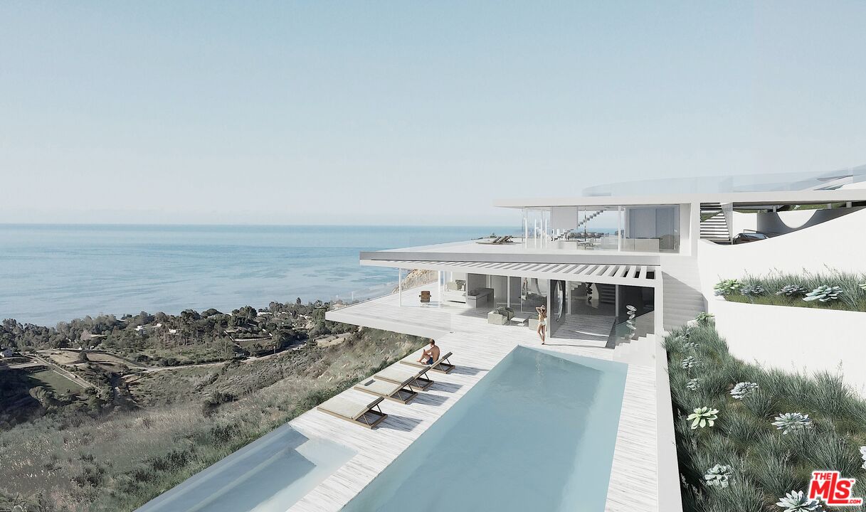 Sold ready to break ground with active permits for a landmark estate! Introducing the Skylone House. Just 5 minutes from Pacific Coast Hwy and sandy beaches, this 1+ acre lot offers magnificent 180-degree views of the ocean, Catalina, breaking waves at Point Dume, and far beyond. The 3-story modern home by renowned architects totals a generous 6,450 sq. ft. and perfectly captures the views while maintaining privacy and tranquility in a stunning natural setting. The entry-level offers open-concept luxury with an entertaining area, large fish tank, media room, and dining space that flows into a high-end kitchen. All of this opens to a huge, outdoor sundeck with a fire pit and infinity-edge reflecting pool. The lower floor boasts a lavish, ocean-view master suite with a seating area, dual walk-in closets, fireplace, a spa-like bathroom, and access to an outdoor deck with a reflecting pool. There are four additional bedroom suites, three of which feature outdoor deck access, and another separate suite ideal for guests. On the basement level, there is a wine dining room, a gym, and a state-of-the-art recovery room featuring a sauna, steam room, and cold plunge. Stairways and a glass elevator make for seamless movement between each floor. Outside, set in the beautiful garden, is a large swimming pool/spa and a sun-filled terrace. At the street level, an architectural U-shaped rooftop deck is the perfect setting to host and entertain with 360-degree views of the Pacific and Santa Monica Mountains. Additional features include a security room, home automation system, music surround system, and double parking lifts to a subterranean garage. The Skylone House is Malibu's next great masterpiece, an entertainer's dream and the ultimate private retreat. Contact listing agents for additional information and documents.